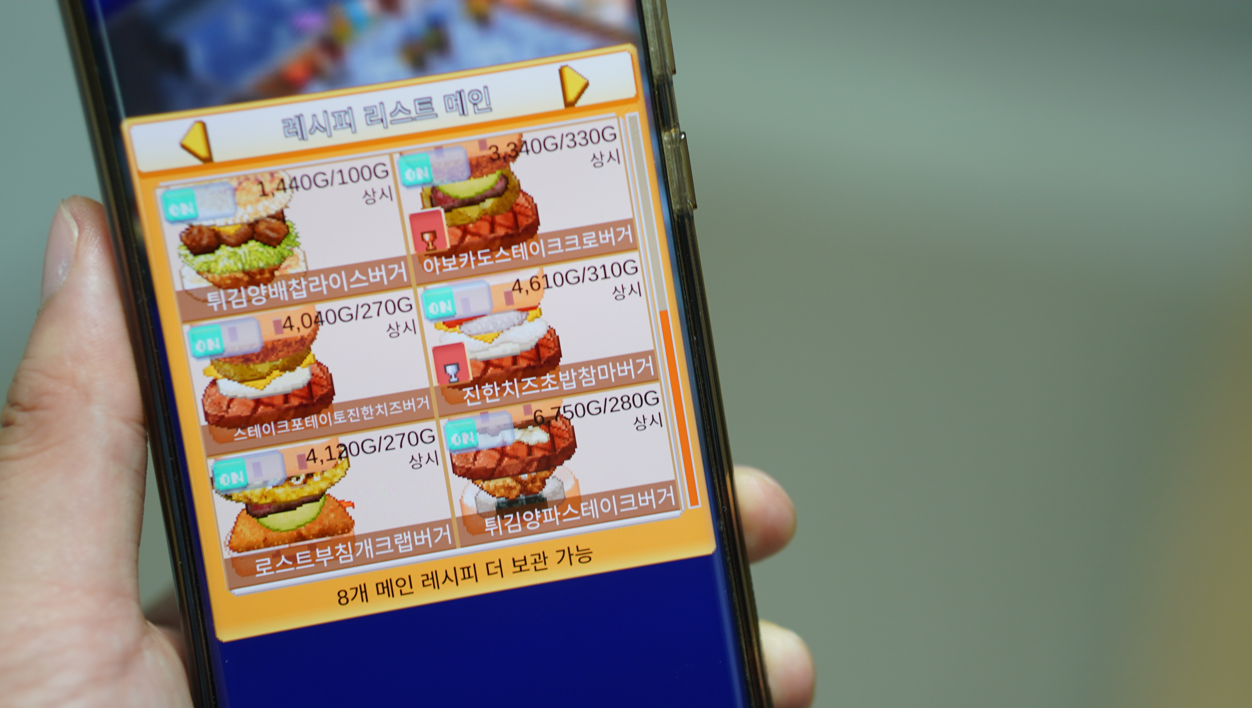 그러므로 대회용 햄버거는 무조건 판매금지 상태로 걸어두는게 이득이고, 각각 맛은 120~130 이상이면 무난하게 우승이 가능합니다.